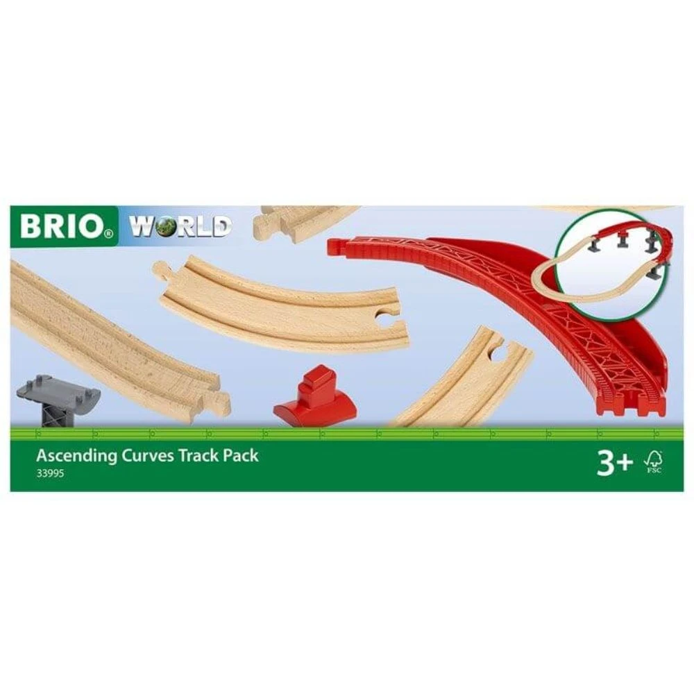 Take your BRIO World train sets to new heights with the 63399500 Ascending Curves Track Pack. These twisty-turny, uppy-downy tracks bring speed, height and a splash of colour to your railway tracks. Use this train track set on its own as a closed-circuit track or build it into any existing BRIO World layout for added height, speed and fun.