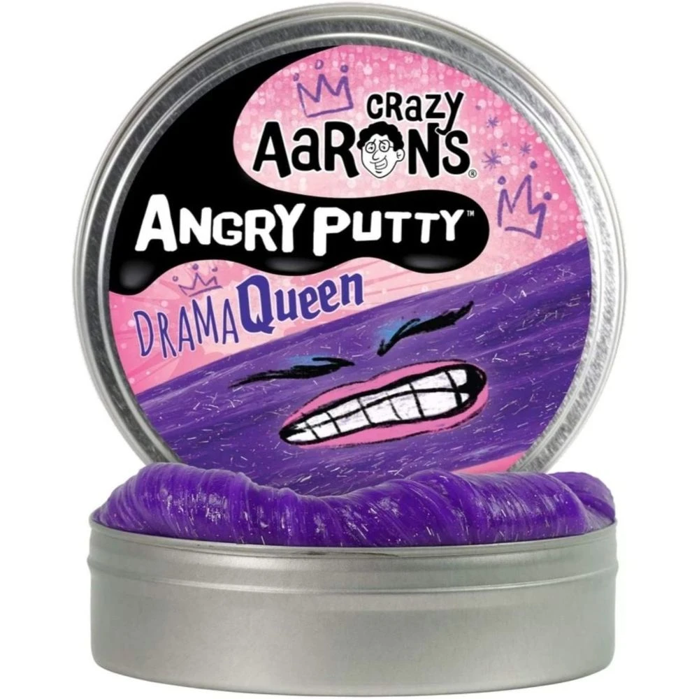 Crazy Aaron’s Thinking Putty introduces Angry Putty – Take your drama to task with Drama Queen Angry Putty. This pretty green putty gets more and more resistant with each stretch to absorb your tension and ensure your peaceful reign.Turn your frustration into fun! Angry Putty features a unique formula that builds resistance as you play. This amazing putty actually absorbs your tension—getting tenser and tenser with each stretch—to leave you feeling happy and relaxed.