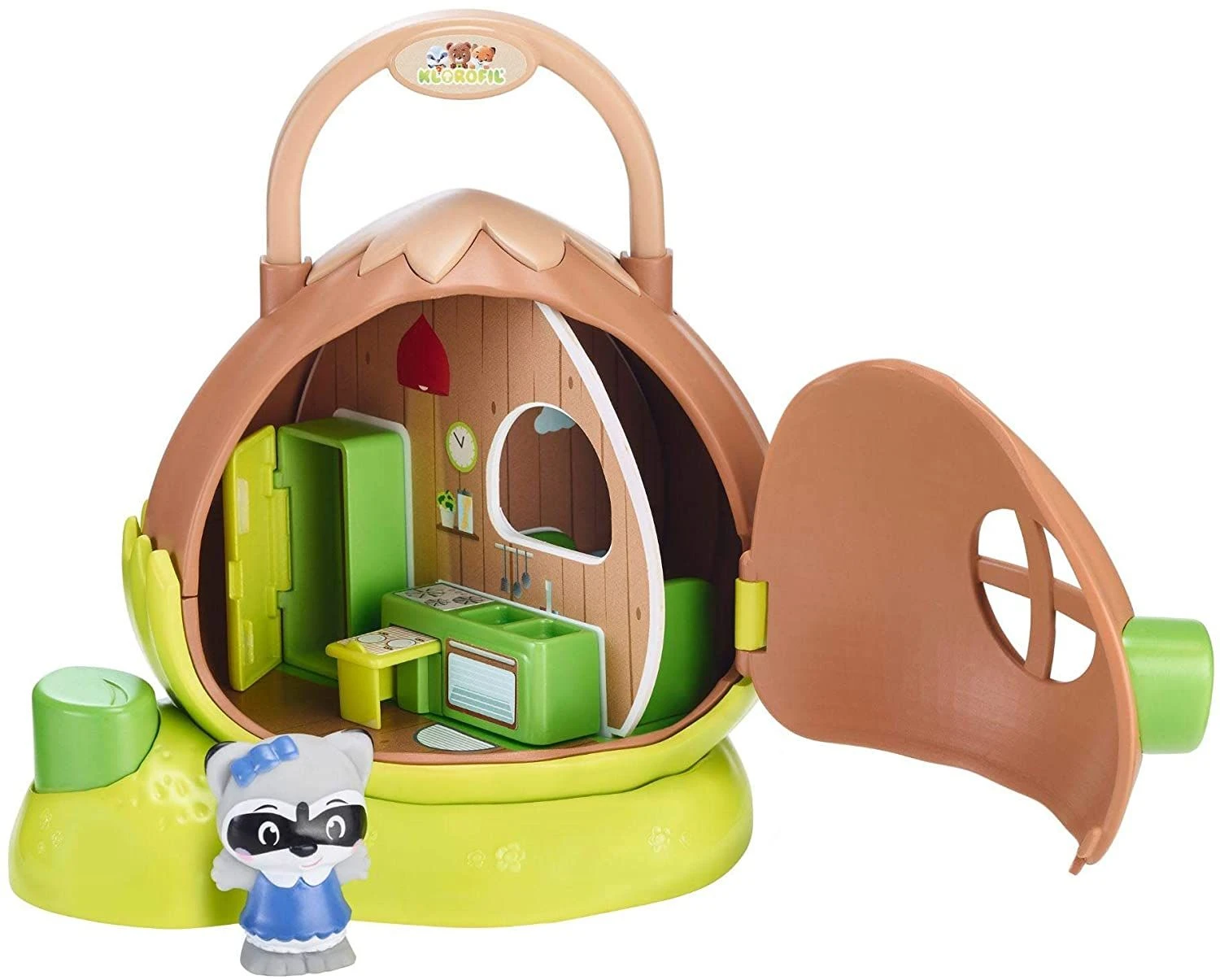 Open up the big front door to reveal a delightfully detailed interior. Then, press the button to explore the three different rooms.