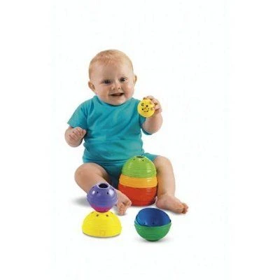 Baby can learn so much through basic play, and these stackable, nestable, fit-together-and-roll-around cups offer endless versatility for lots of enriching discoveries. Includes 10 colorful cups to grasp, stack or nest, with grooved surfaces for a snug fit and easy stacking. Different colors, sizes and numbers help build early identification skills. A smiling jingle ball nests inside any cup, or fits on top of a whole stack!