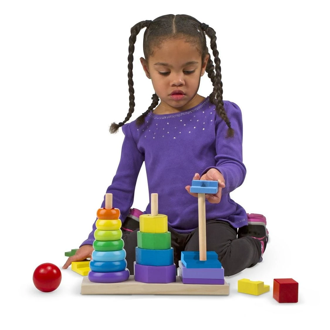 Includes 25 durable, solid-wood pieces to match and stack. Great for building early shape, color and size differentiation skills! *This item not available for gift wrap.