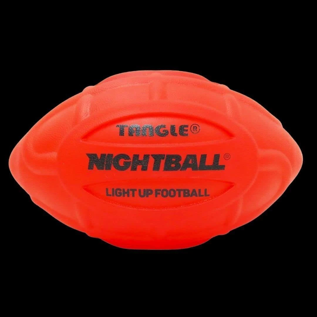 The ultimate illuminated football has arrived! The Tangle NightBall Football is perfect for indoor and outdoor play, both day and night! Patented ultra bright LED technology means catching with your friends doesn’t have to end just because the sun goes down. Ultra grip texture and replaceable batteries make this light-up football a winner at every tailgate, BBQ, and picnic all year long. Catch them in every color and step up your game the NightBall way!