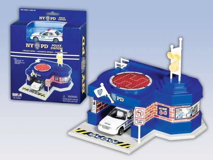 These are the toys for every child who dreams of being a police officer. Offers hours of fun and safe play action. Great as a gift for any occasion. Includes police station, patrol car and signage.