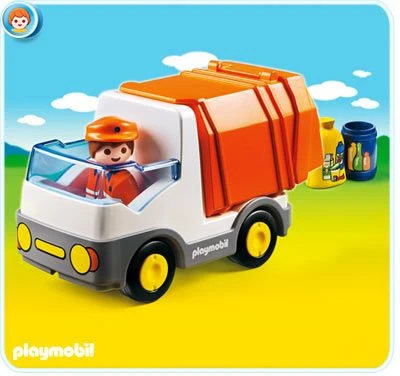 Today comes the garbage disposal truck! Trash bag and trash are already in the street.