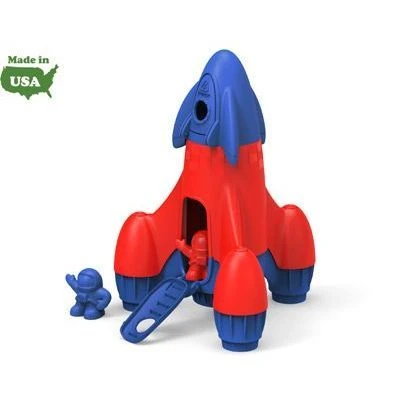 3-2-1 blast off – the Green Toys Rocket launches into another eco-friendly deep-space mission! Made in the USA from 100% recycled plastic milk jugs that save energy and reduce greenhouse gas emissions, this spacecraft takes off in search of other planets while still taking care of this one. The fully equipped, 2-in-1 set includes a detachable top capsule and two astronauts that sport molded spacesuits, helmets, and dual-tank backpacks. Powered by a main booster and three auxiliary fin boosters, the Rocket has a large door that flips down to double as a set of steps up into the main cavity, while the detachable nose cone capsule has its own door that opens to reveal buttons, dials, and of course, the signature Green Toys 8-track. No BPA, phthalates, PVC or external coatings, and also dishwasher safe for easy cleaning. Packaged with recycled and recyclable materials and printed with soy inks. New 2013