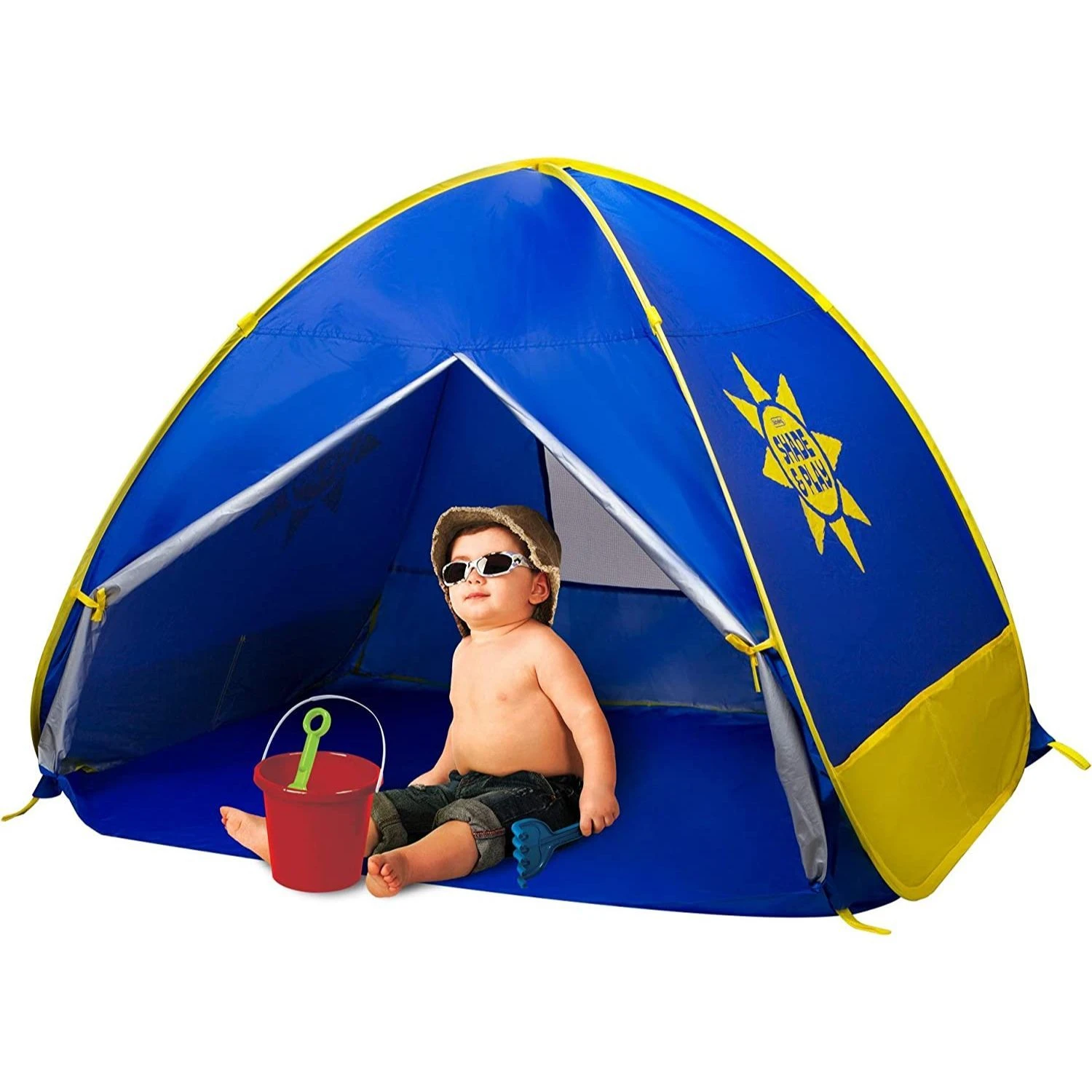 The UV Play Shade is brought to you by Schylling Toys, the world leader in traditional toys and classic fun. Now a day at beach can be worry free from UV. This tent is made from a special material that is certified to exceed Sun Protection Factor 50. Perfectly portable, the UV Play Shade fits in an easily carried “Go Anywhere” travel bag. Just sling it over your shoulder and off you go. It sets up in seconds, quickly popping up into shape. No adjustments need to be made. It comes with tie down pegs and special, strategically placed sand pockets to securely anchor it in place. Pack up is a breeze as it easily folds up and goes right back into the pouch. Enjoy the outside while protecting kids from the sun.