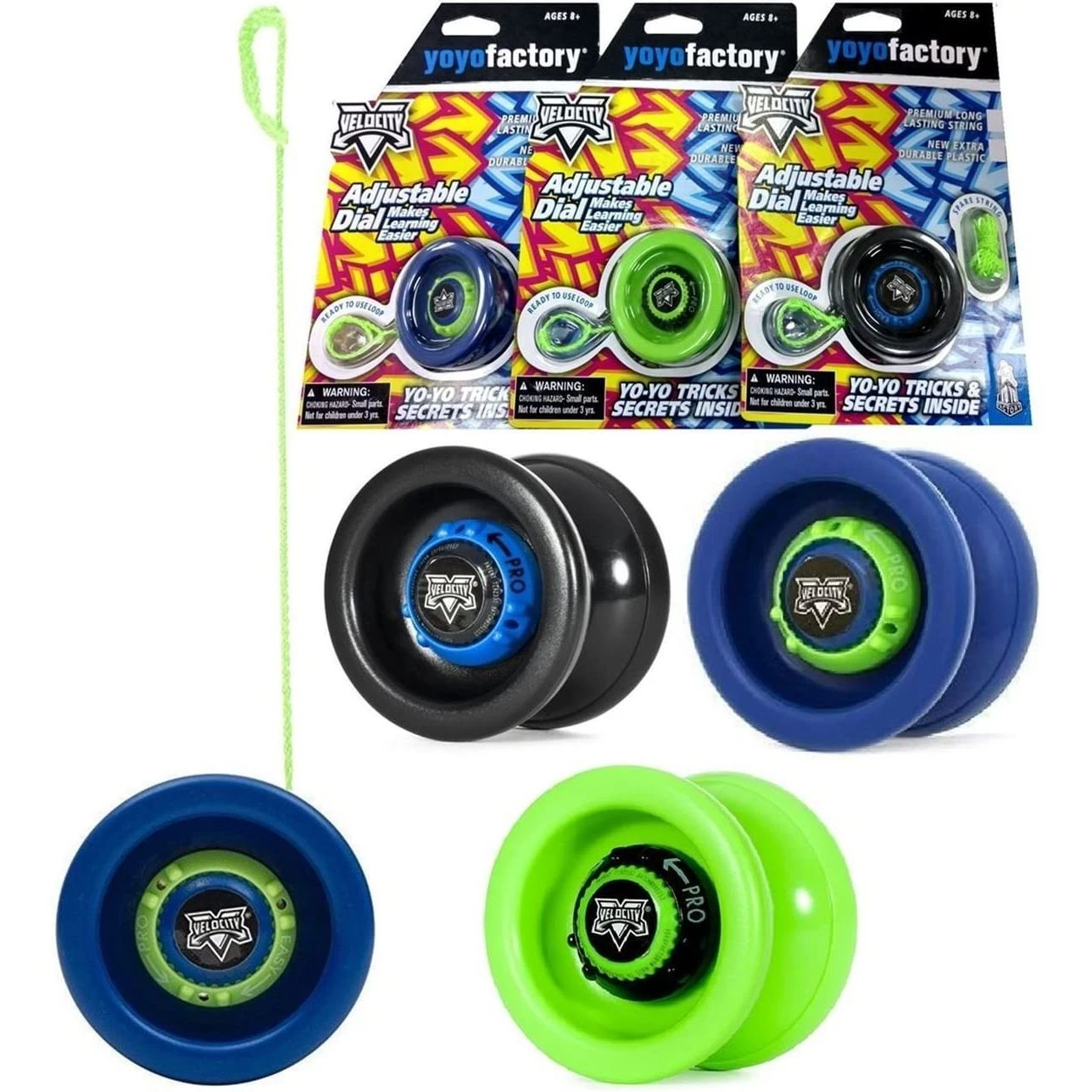 THE yo-yo of the 21st century: the Velocity is the first yo-yo of its kind. With the adjust-o-matic dials on each side of the yo-yo, the Velocity can be turned from a classic up and down yo-yo into a modern bind-return yo-yo with the turn of a dial. With the dials turned down for classic performance, you can throw the yo-yo and tug it back to your hand with ease, which makes it easier to learn the basics of yo-yoing.